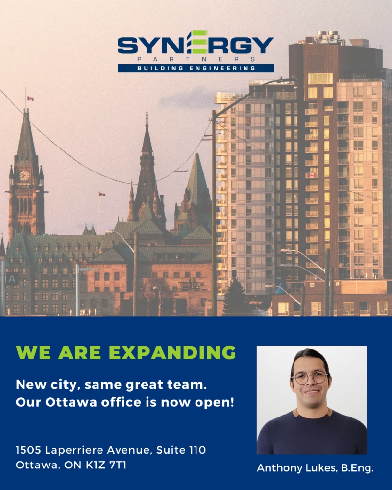 Our Ottawa office will deliver comprehensive building restoration, building enclosure, and advisory services that Synergy is known for.